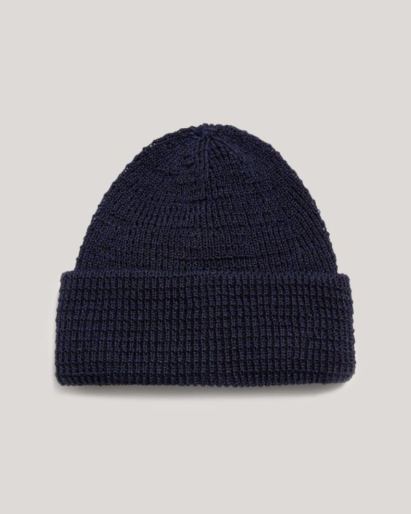 Men YMC Headwear | Cableami Waffle Beanie Hat Navy